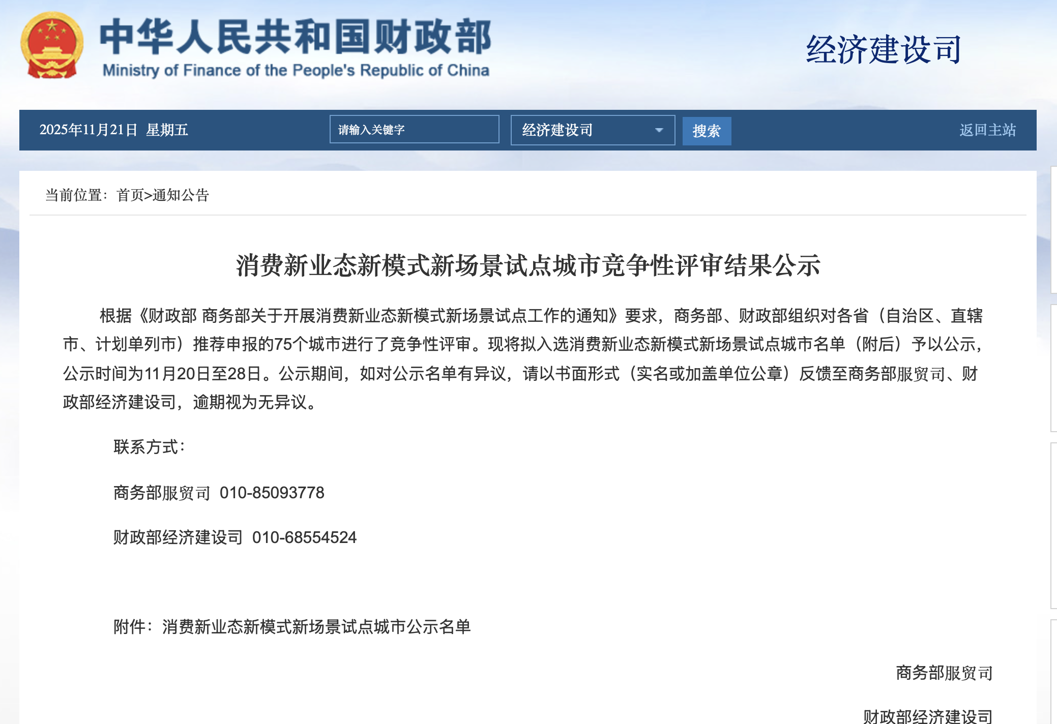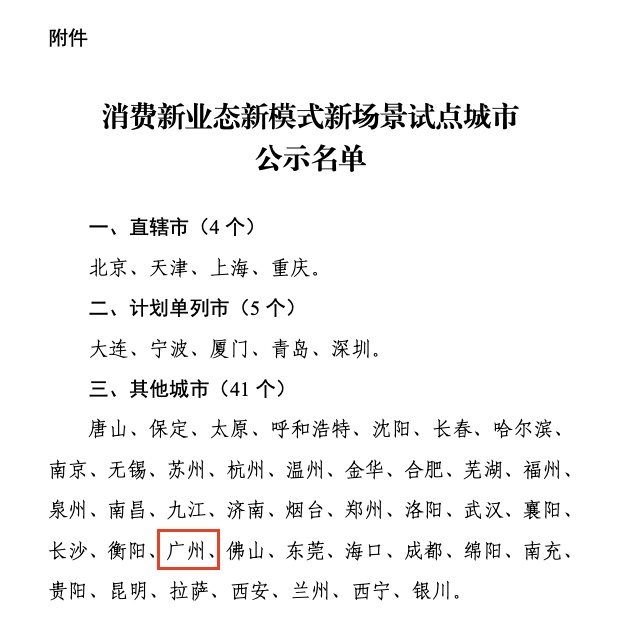 11月20日股巢网,财政部、商务部对消费新业态新模式新场景试点城市竞争性评审结果进行公示,全国共50个城市入选,广州位列其中。公示时间为11月20日至28日。